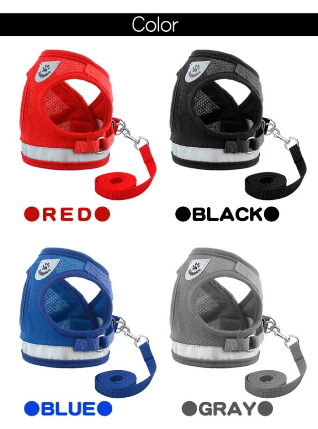 犬 ハーネス リード付 ペット 服 ウェアハーネス 胴輪 キャット ドッグ メッシュ h0185