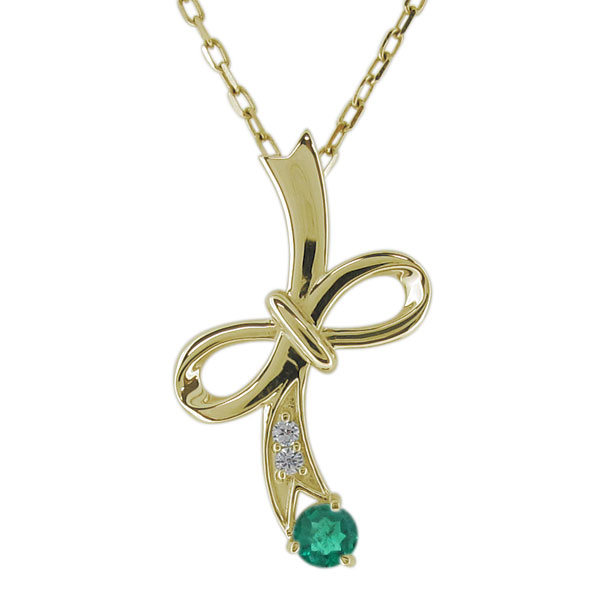 ネックレス・リボンモチーフ・レディース・エメラルド・ペンダント・18金