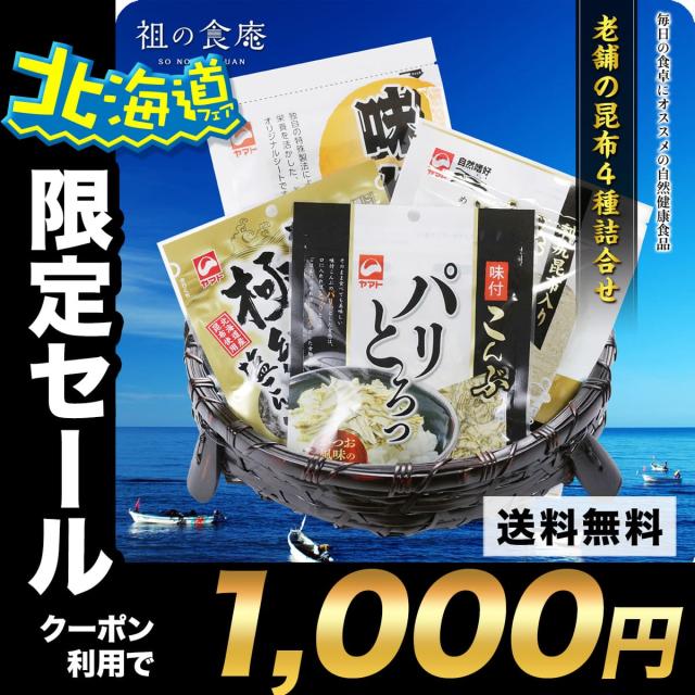★クーポン利用で⇒1,000円ぽっきり!★ 老舗の昆布4種詰め合せ メール便 とろろ昆布 塩昆布 味付昆布 ご飯のお供 朝食 弁当 お弁当 子供 おにぎり 健康 昆布 こんぶ コンブ 海藻