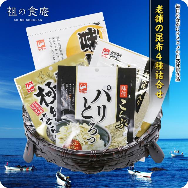 老舗の昆布4種詰め合せ メール便 とろろ昆布 塩昆布 味付昆布 ご飯のお供 朝食 弁当 お弁当 子供 おにぎり 健康 昆布 こんぶ コンブ 海藻