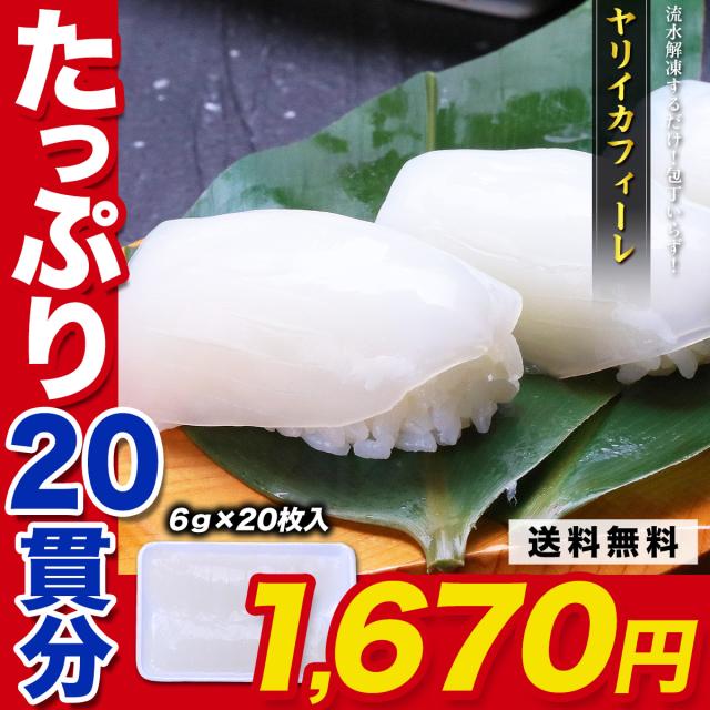 送料無料 ヤリイカフィーレ(6g×20枚入り) いか イカ 烏賊 刺身 寿司 イカ刺し