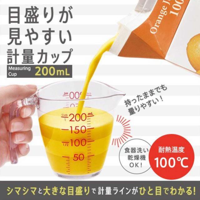 marna マーナ 計量カップ K649 ( メジャーカップ 200ml 目盛りが見やすい計量カップ 計量コップ 計量器具 食洗機対応 キッチンツール 製菓道具 下ごしらえ キッチン用品 キッチン小物 調理器具 フック穴付き )