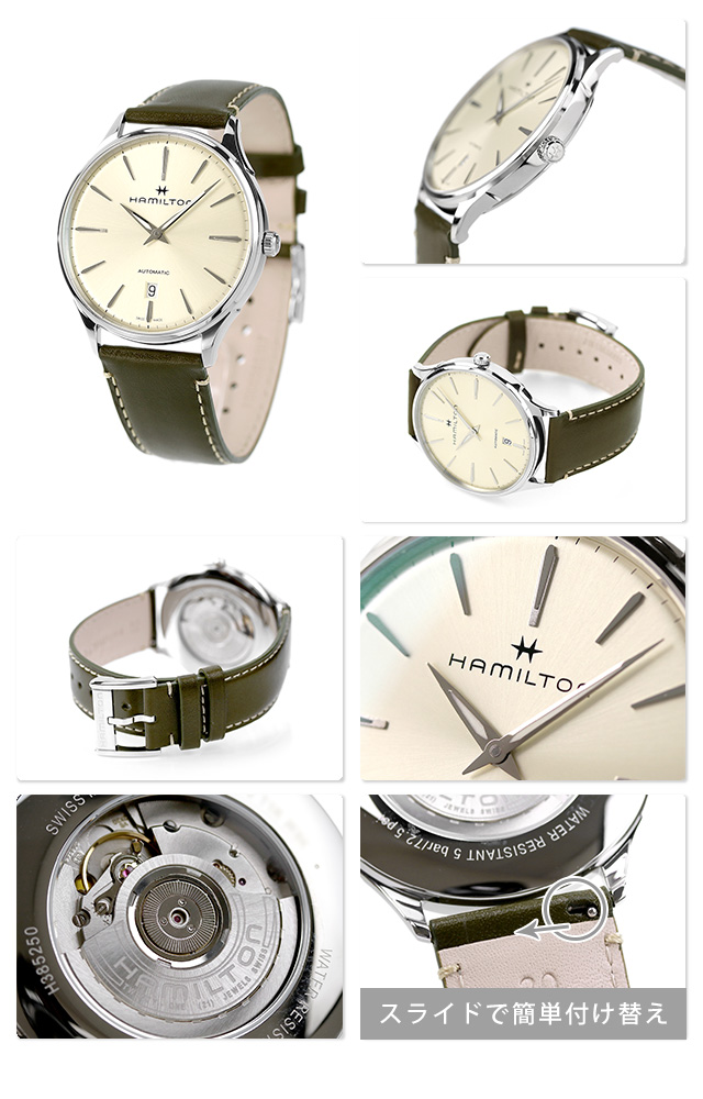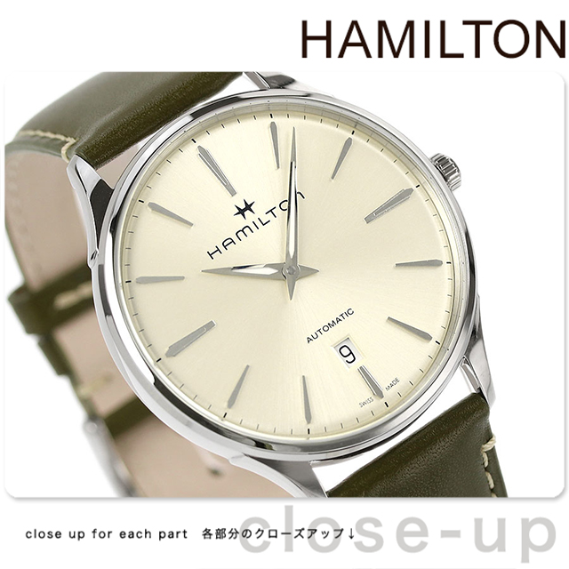 H38525811 ハミルトン HAMILTON ジャズマスター シンライン 40mm 自動巻き メンズ 腕時計 ブランド ベージュ×グリーン 時計
