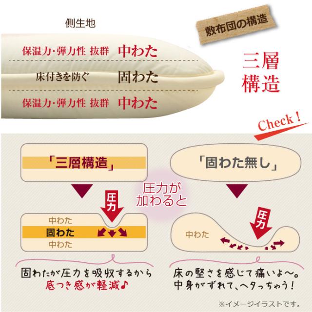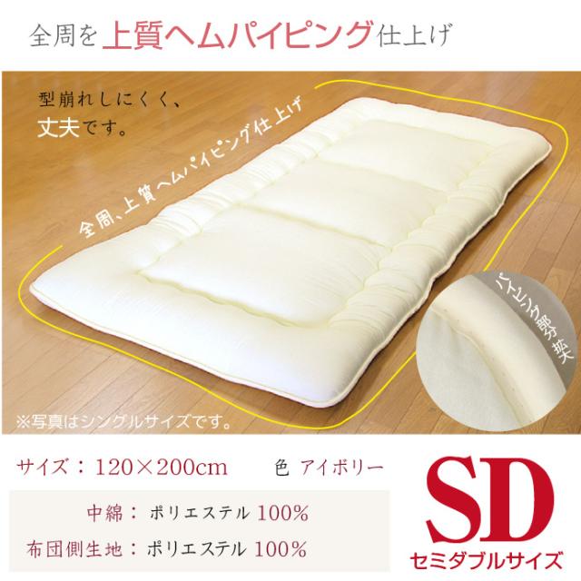 敷布団 セミダブル SD 送料無料 日本製 ほこりの出にくい 三層敷布団 固綿入り 底付き軽減 敷き布団 オールシーズン ボリューム 軽量