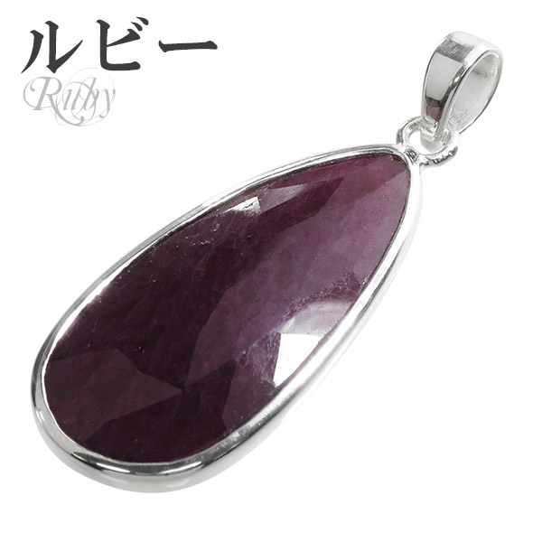 ルビー カット シルバー ペンダントトップ ペンダントヘッド 雫 7月 誕生石 ヘッド トップ 天然石 パワーストーン ルビ- ペンダント