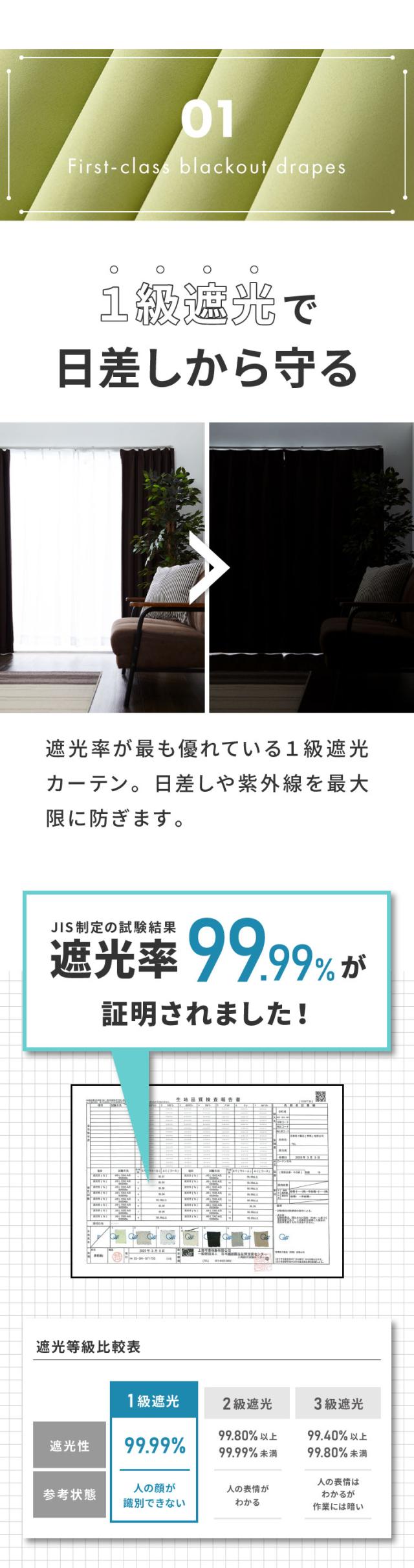 遮光率:99.99%(遮光等級1級)※薄色(遮光等級2級)