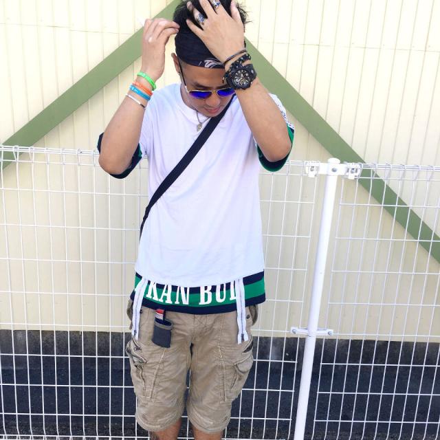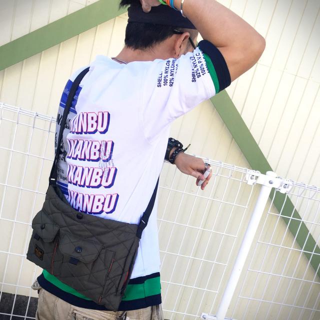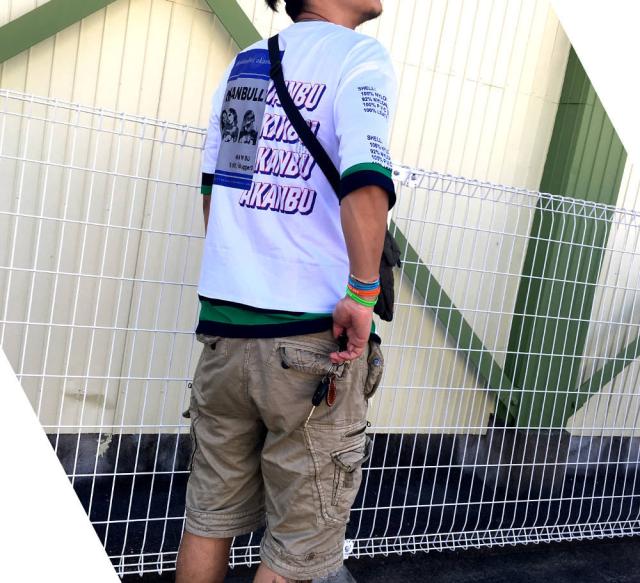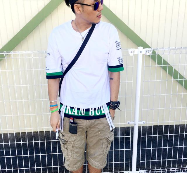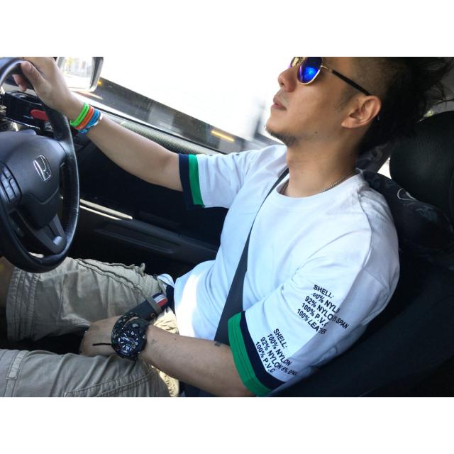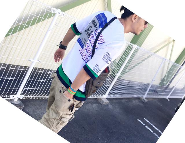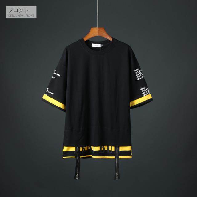 肩が落ちるデザインのバックプリント/FレイヤードTシャツ袖と裾が2枚重ね着したようなデザインとなっています。