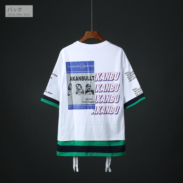 【ポイント02倍UP】完売御免【送料無料】半袖 Tシャツ メンズ フェイクレイヤード バックプリント ドロップショルダー #TA123 M便 BL