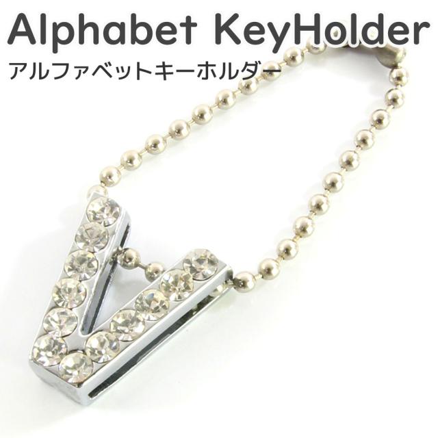 スワロフスキー アルファベット メッキエンブレム イニシャル キーホルダー V 1文字チャーム ギフト プレゼント等に