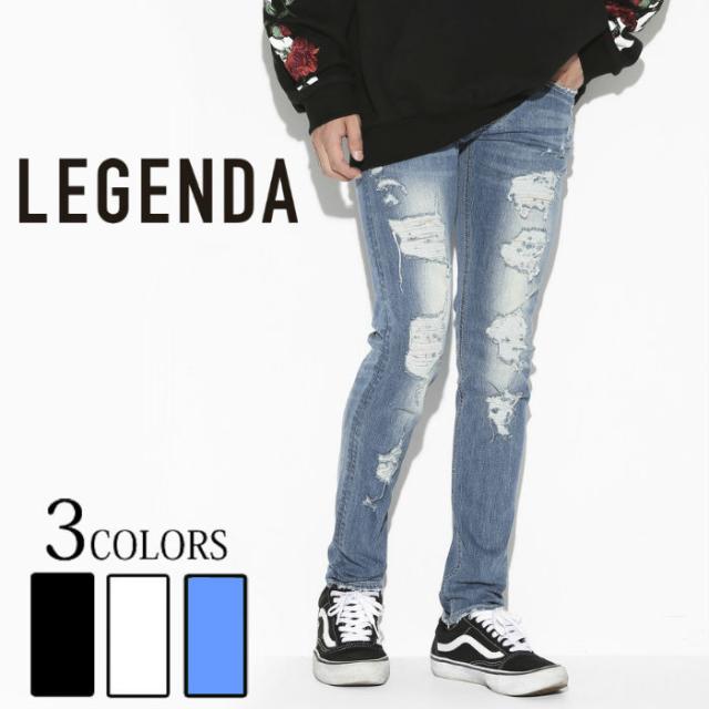 LEGENDA【レジェンダ】Crash スーパースキニーデニム[LEP131]メンズ ジーンズ ダメージ クラッシュ 細身 ストレッチ