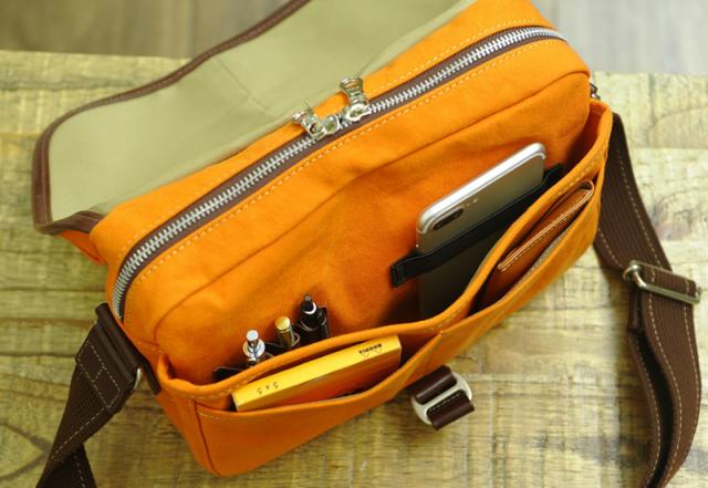 - 大きからず小さからずの小型ショルダーバックを探していました。帆布製のバックはハリコシはありますが適度に体のラインになじみます。メイン収納部の内寸は、H16?×W26?×D6? くらいです。360ml(...