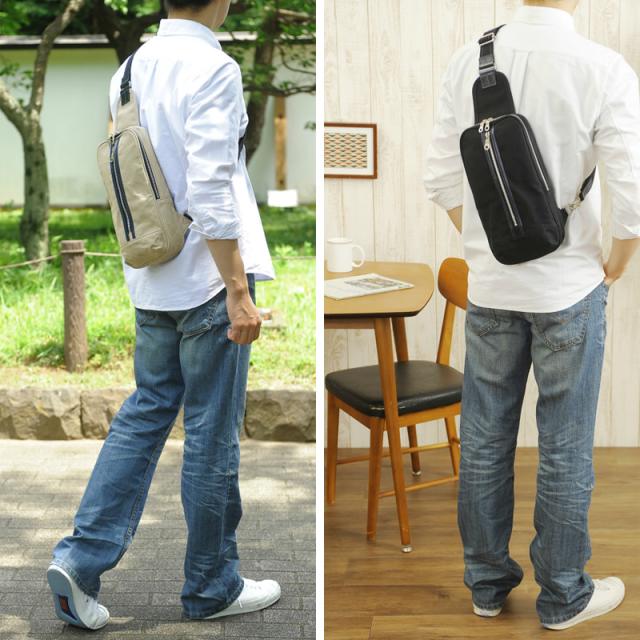 豊岡鞄 直帆布 メンズ ボディバッグ ショルダー バッグ 帆布 コンパクト 左右両掛け 帆布 日本製 大人 男性 【送料無料】
