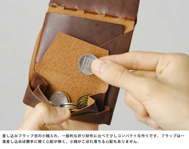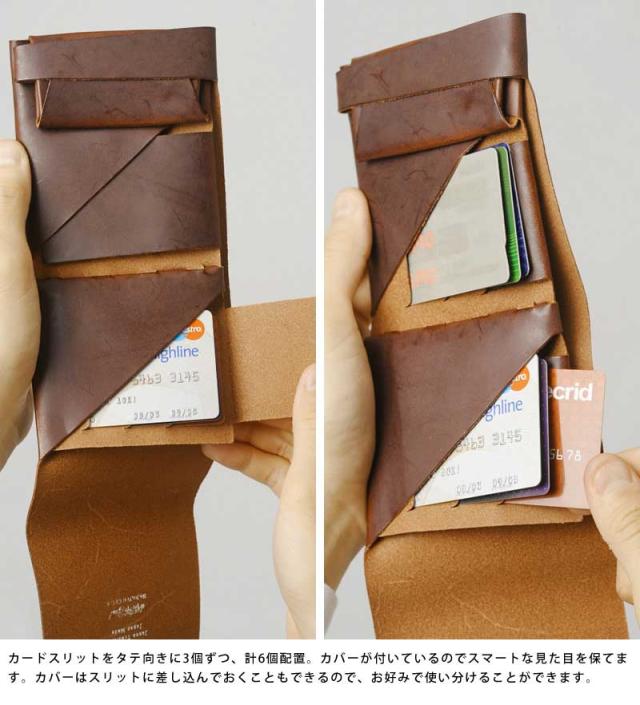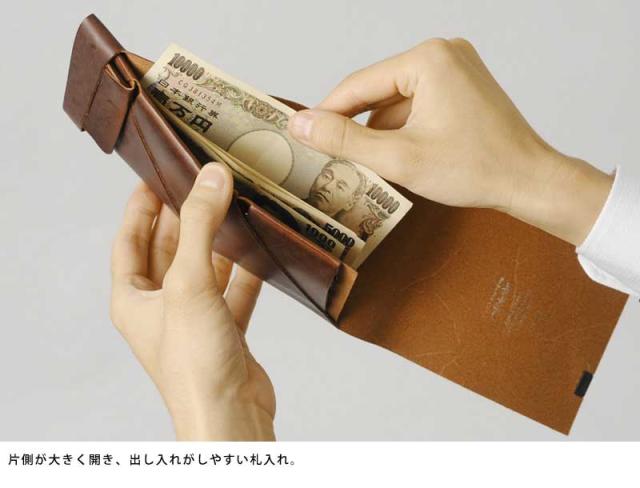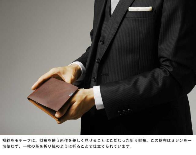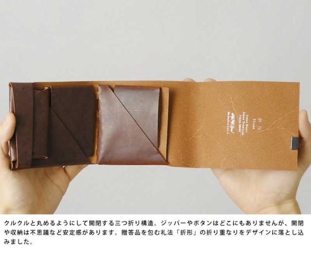 折り紙のように一枚の革を折って仕立てた独創的な折り財布。高い堅牢性を誇るブライドルレザーを使用。