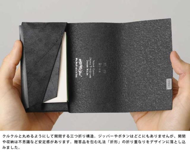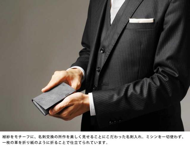 折り紙のように一枚の革を折って仕立てた独創的な名刺入れ。高い堅牢性を誇るブライドルレザーを使用。