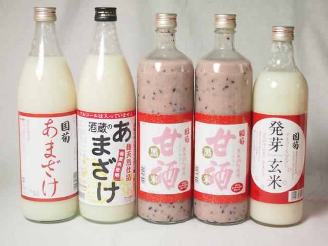セレクト甘酒5本セット(ぶんご酒蔵のあまざけ1本(大分県)国菊甘酒あまざけ1本 黒米2本 発芽玄米1本(福岡県)900ml×4本 985g×1本)計5本