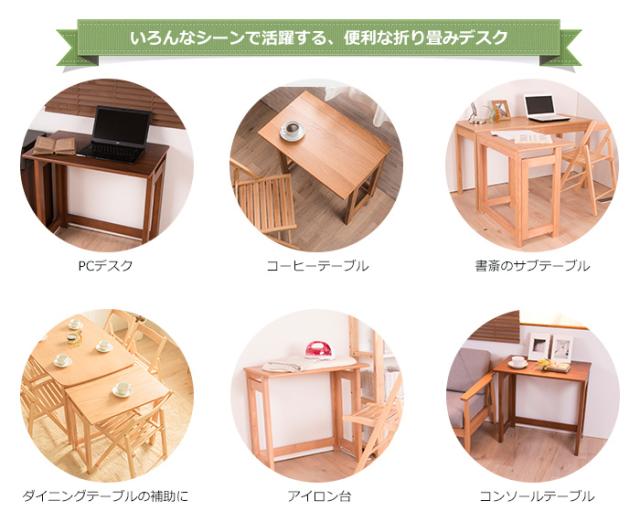 折りたたみデスク パソコンデスク 天然木テーブルリビング ミシン台 サイドテーブル 棚 PCデスク アイロン台 北欧テイスト(代引不可)【送料無料】