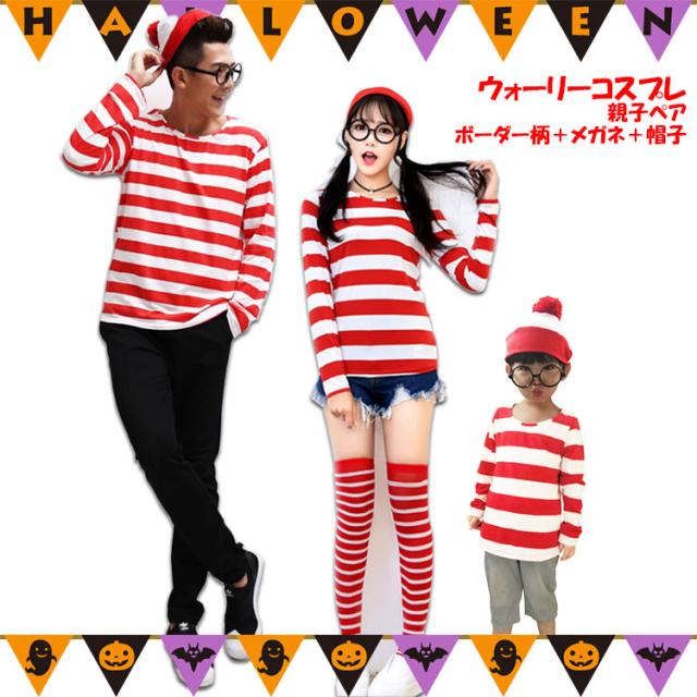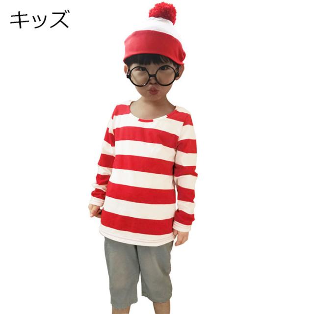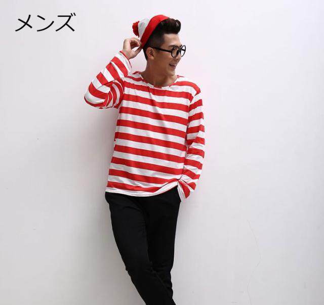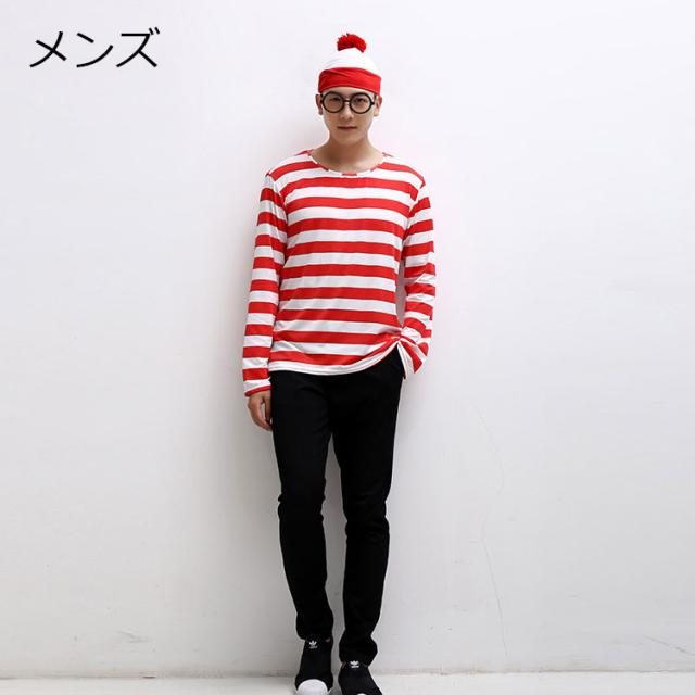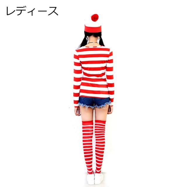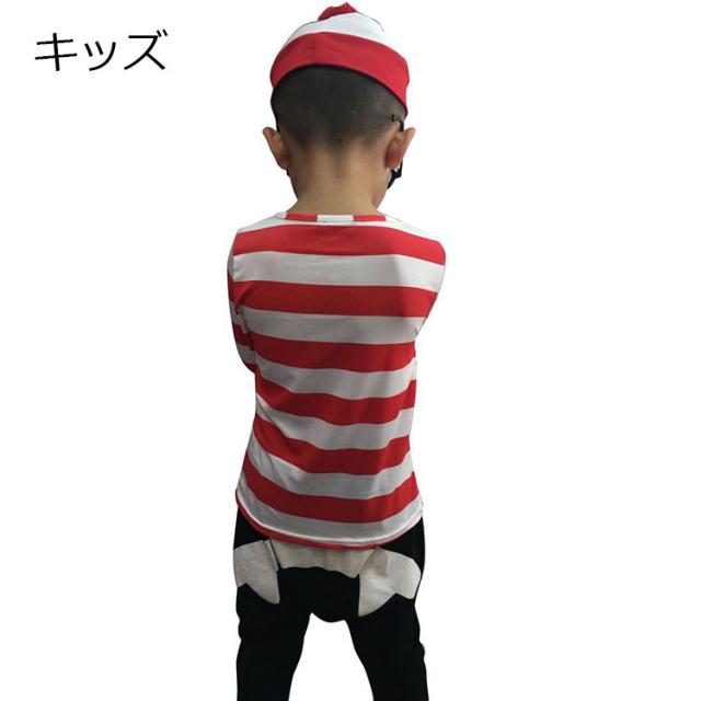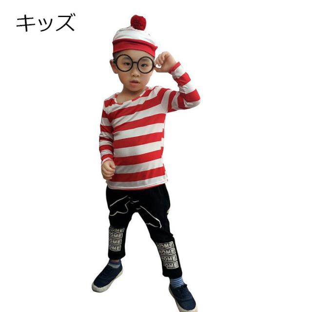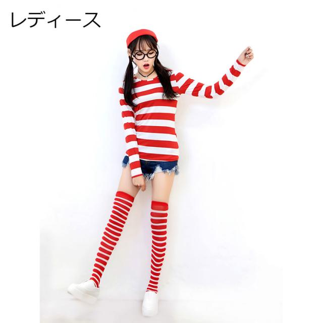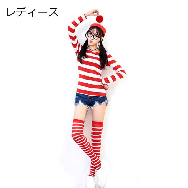 ウォーリー コスプレ レディース コスチューム 大人用 メンズ 子供 キッズ ハロウィン 衣装 仮装 囚人服 ボーダー柄 3点セット