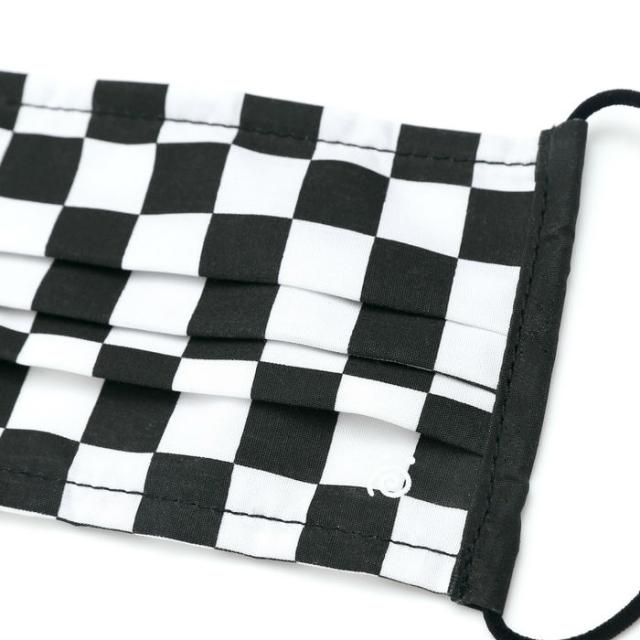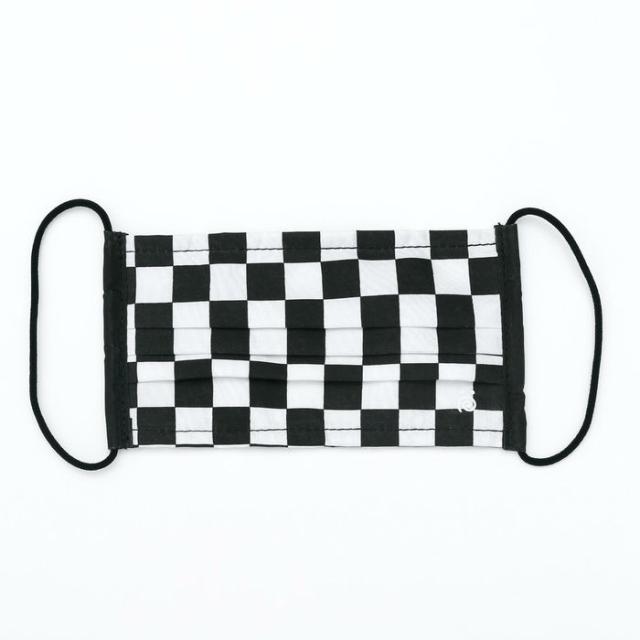 くすんだホワイト・ブラックのモノトーン配色での市松模様がマスク全体に広がり、和の雰囲気を演出してくれます。