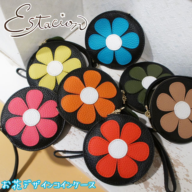 メール便送料無料 レディース 財布 ポーチ エスタシオン Estacion 8028 本革 花 フラワー 小銭入れ