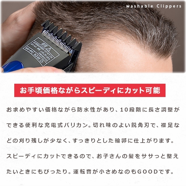バリカン ウォッシャブル充電式 コードレス 10段階 (i) 散髪 セルフカット 電動 家庭用 メンズ 急速充電