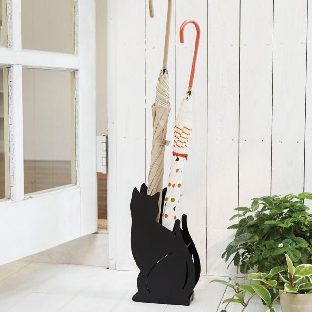 山崎実業 傘立て ネコ ブラック
