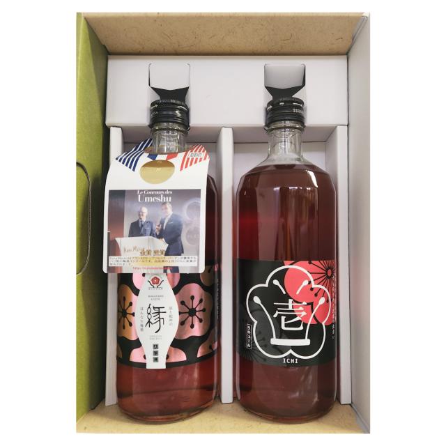 「梅酒(壱)ICHI」は、沖縄県泡盛をベースとした琉球泡盛梅酒です。紀州みなべ産の完熟南高梅と希少な真っ赤なすもも梅をじっくり漬け込みました。きれいな淡いピンク色で香りも豊か、さっぱりとした甘さで口あたりのよい本格梅酒です。※アルコール度13度。「梅酒(縁)ENISHI」は、京都佐々木酒造の壽楽蔵出し原酒で完熟南高梅を漬け込んだ梅酒です。紀州みなべ産の完熟南高梅と露茜(つゆあかね)という和歌山県の一部の農家でしか作られていない希少な品種の梅をじっくりと漬け込みました。いちごのようなきれいな赤い色合いで日本酒のフルーティーな味わいと南高梅の風味が楽しめる飲みやすい本格梅酒です。※アルコール度10度。