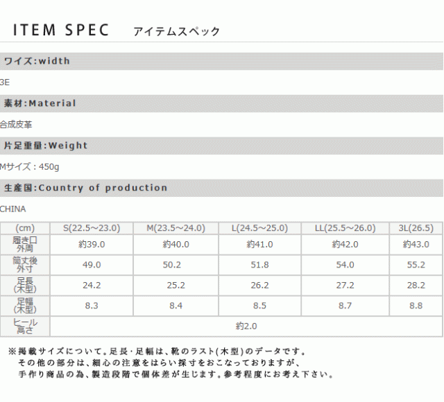 ★サイズ【S(22.5〜23.0)/M(23.5〜24.0)/L(24.5〜25.0)/LL(25.5〜26.0)/3L(26.5)】(単位cm)