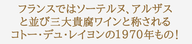 ボーリュー・シュル・レイヨン村にて1822年よりワイン造りを営むこのシャトーは、長年にわたり非常に高い名声を誇ってきた、この地を代表するシャトーのひとつです。2006年に、自動車産業で成功を収めたミッシェル・プティボワが購入してオーナーが変わってからも、「ベタンヌ&ドゥソーヴ」に毎年のように掲載されるなど、不動のプレステージであり続けています。 コトー・デュレイヨン、サヴニエール、アンジューに計30haの畑を所有し、2012年にビオロジー栽培に転換しています。ご紹介する古酒は、前オーナーのマルク・モルガが造り、貯蔵していたプライベートストックです。「尋ねられなければこちらからは案内しない」秘宝で(尋ねてよかった〜)、数がかなり少ないため、いつまでご案内できるかは不明です…。ぜひこの機会にご検討くださいませ。コトー・デュ・レイヨン ボーリュー ヴィエイユ・ヴィーニュ 1970年 シャトー・デュ・ブルイユボーリュー・シュル・レイヨン村のシスト土壌自社畑からシュナン・ブラン100%を収量25〜30hlの低収量。長期熟成を目指すためステンレスタンクで醸造&7ヶ月熟成!残糖は50〜60g/L!50年近くをカーヴで大切に熟成し、素晴しいものだけをリリースするというこだわり! |