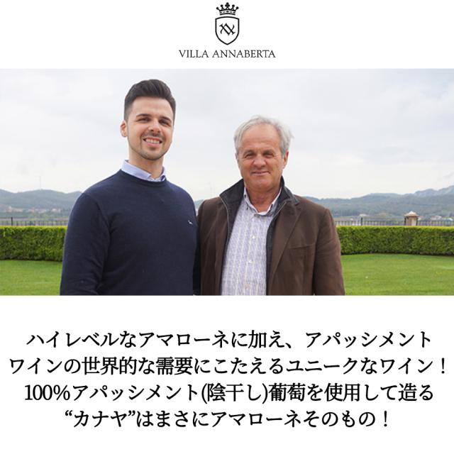 ハイレベルなアマローネに加え、アパッシメントワインの世界的な需要にこたえるユニークなワイン!100%アパッシメント(陰干し)葡萄を使用して造る“カナヤ”はまさにアマローネそのもの!