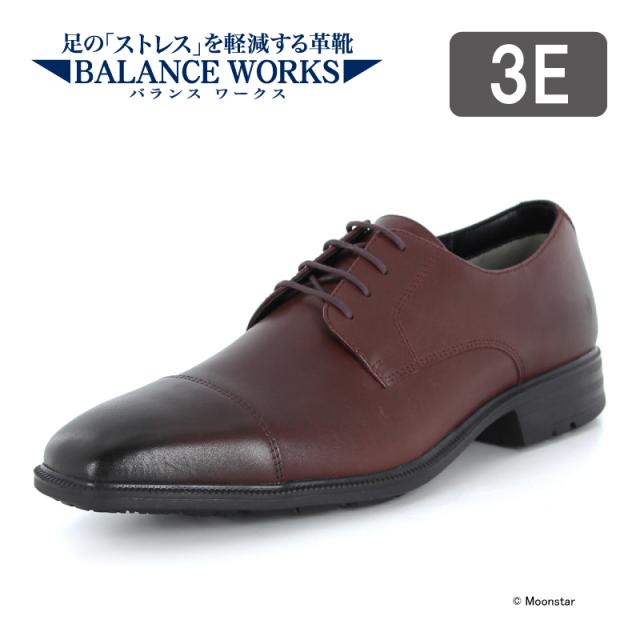 足の「ストレス」を軽減する革靴「ムーンスター バランスワークス」シリーズ。メンズビジネスシューズ「雪上防滑」タイプです。「柔らかさ」と「安定性」の機能はそのままに、ガラス繊維入りラバーを踵部と踏み付け部に使用。ガラス繊維が氷に刺さり、氷上でもグリップ効果を発揮します。(※油や小石などの異物により効果が低下する恐れがあります。)また、地面から4cm8時間の防水設計も備えており急な雨や雪にも対応します。ライニングにはムレ対策として吸水拡散素材「サラリーナ(R)」を全面的に使用、臭い対策として「Ag+抗菌防臭」を搭載しています。ストレートチップタイプ。【サラリーナ(R)】汗や水分を素早く吸収し、靴内をサラサラな状態に保つメッシュを使用しています。【Ag+抗菌防臭】銀イオンの抗菌作用で臭いのもととなる菌の増殖を抑制し、防臭効果を発揮します。(ウィズ)3E (素材:アッパー) 天然皮革(ステア) (底材) 発泡ラバー/防滑ゴム (原産地) CAMBODIA (重量)片足約430g/25.5cm時 (ヒール高)約3.0cm/25.5cm時 メンズ、24.5cm 25.0cm 25.5cm 26.0cm 26.5cm 27.0cm 27.5cm 28.0cm