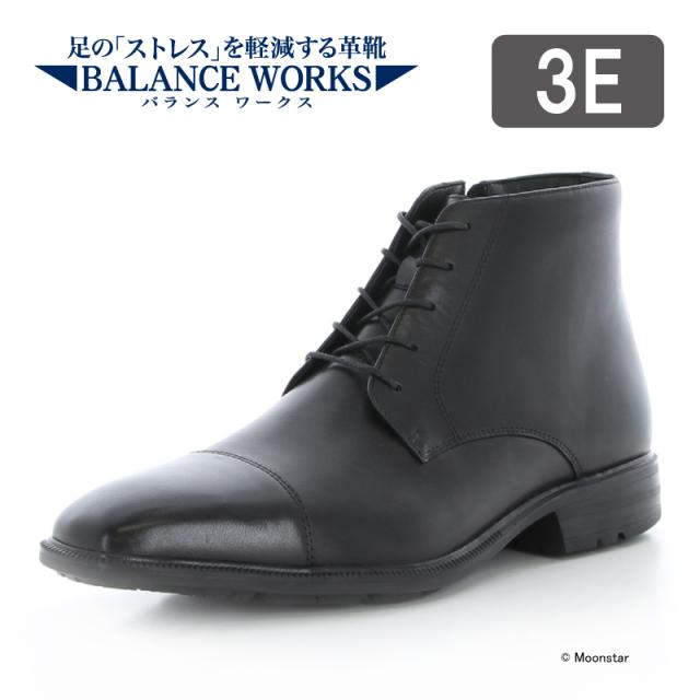足の「ストレス」を軽減する革靴「ムーンスター バランスワークス」シリーズ。メンズビジネスシューズ「雪上防滑」タイプです。「柔らかさ」と「安定性」の機能はそのままに、ガラス繊維入りラバーを踵部と踏み付け部に使用。ガラス繊維が氷に刺さり、氷上でもグリップ効果を発揮します。(※油や小石などの異物により効果が低下する恐れがあります。)地面から4cm8時間の防水設計も備えており急な雨や雪にも対応します。ライニングにはムレ対策として吸水拡散素材「サラリーナ(R)」を全面的に使用、臭い対策として「Ag+抗菌防臭」を搭載しています。デザインは、チャッカタイプ。内側にファスナーが付いているので、ラクに脱ぎ履き出来ます。【サラリーナ(R)】汗や水分を素早く吸収し、靴内をサラサラな状態に保つメッシュを使用しています。【Ag+抗菌防臭】銀イオンの抗菌作用で臭いのもととなる菌の増殖を抑制し、防臭効果を発揮します。(ウィズ)3E (素材:アッパー) 天然皮革(ステア) (底材) 発泡ラバー/防滑ゴム (原産地) CAMBODIA (重量)片足約455g/25.5cm時 (ヒール高)約3.0cm/25.5cm時 メンズ、24.5cm 25.0cm 25.5cm 26.0cm 26.5cm 27.0cm 27.5cm 28.0cm