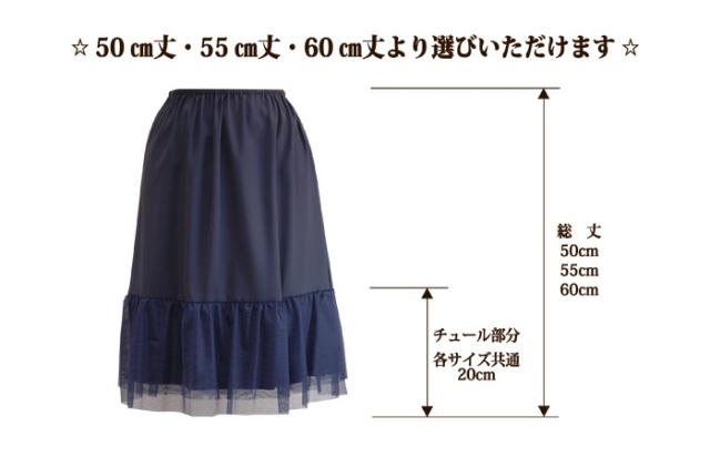 チュール ペチコート 50丈/55丈/60丈 日本製 つけ裾 丈の調節にも【チュール ワンピース チュニック チュールスカート 透け防止 入学式 卒業式】