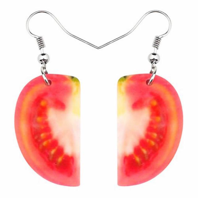 カットしたトマトをデザインした美味しそうなステンレスピアス。イタリアン料理のレストランのオーナーや野菜サラダ好きにおすすめのステンピアス。