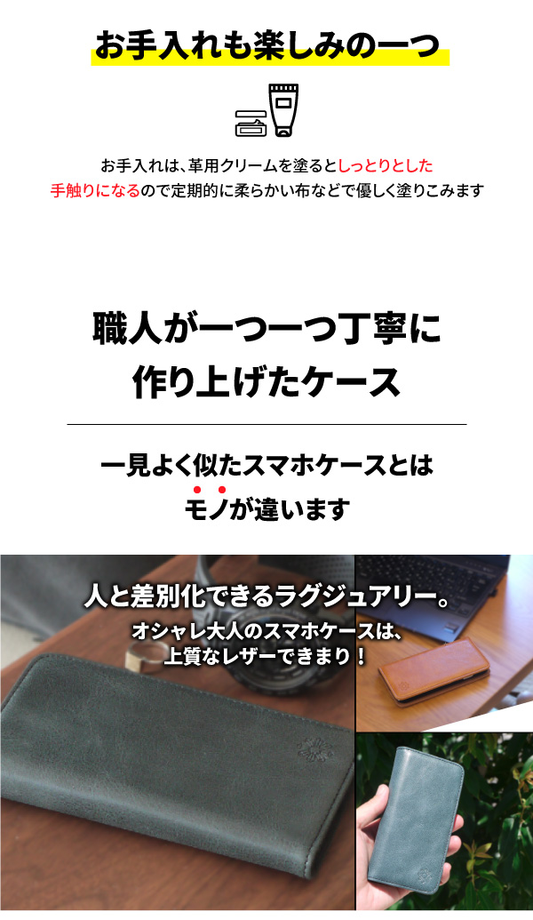 本革の魅力 職人技 圧倒的な高評価 スマホケース アイフォン カバー おしゃれ レザー