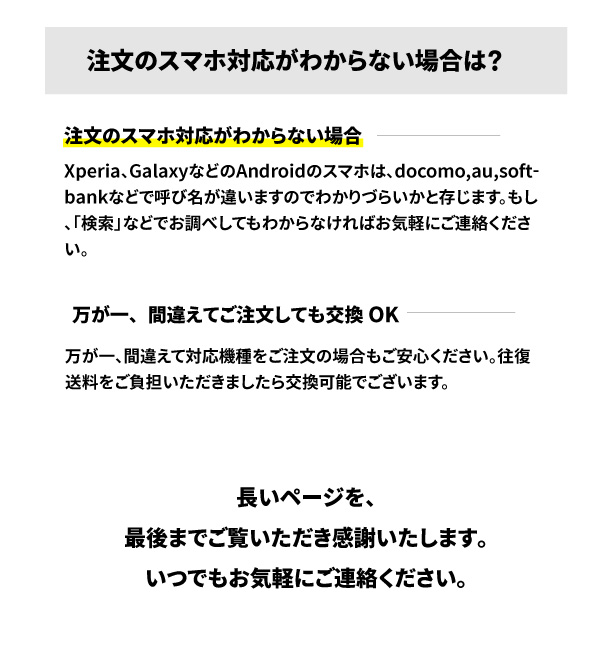 対応スマホ機種を間違えてご注文されないようご注意くださいませ。
