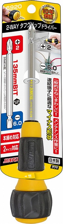 新亀製作所(SUNFLAG) 2WAYタフグリップドライバー No.6920 マグネット付