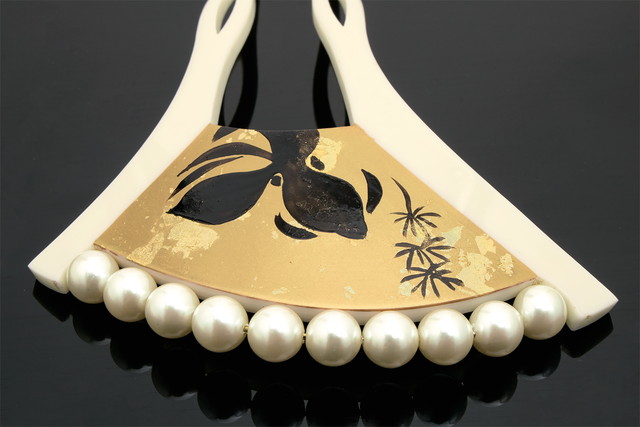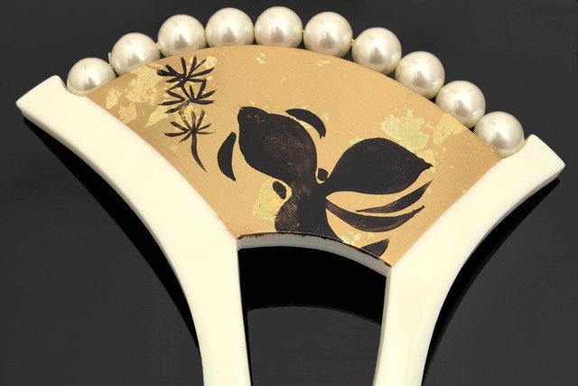 かんざし バチ型 和装 簪 髪飾り 白乳色 オフホワイト 金色 ゴールド 金魚 きんぎょ 手描き フェイクパール フォーマル 髪飾り かんざし ヘアアクセサリー 日本製
