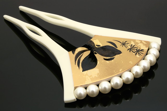 華やかさと上品さを備えた、フォーマル向けバチ型簪(かんざし)です。