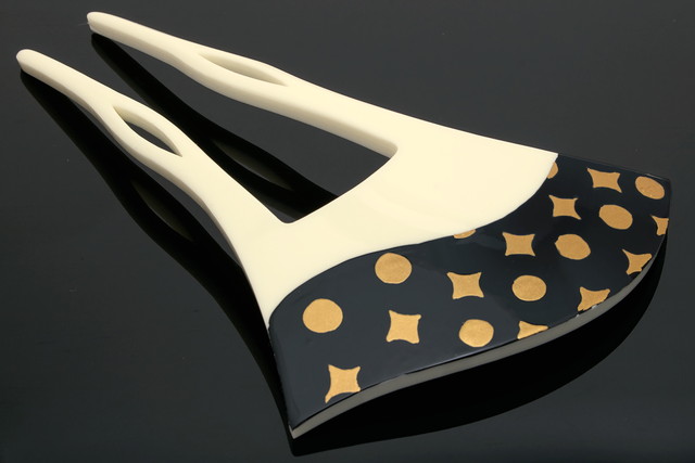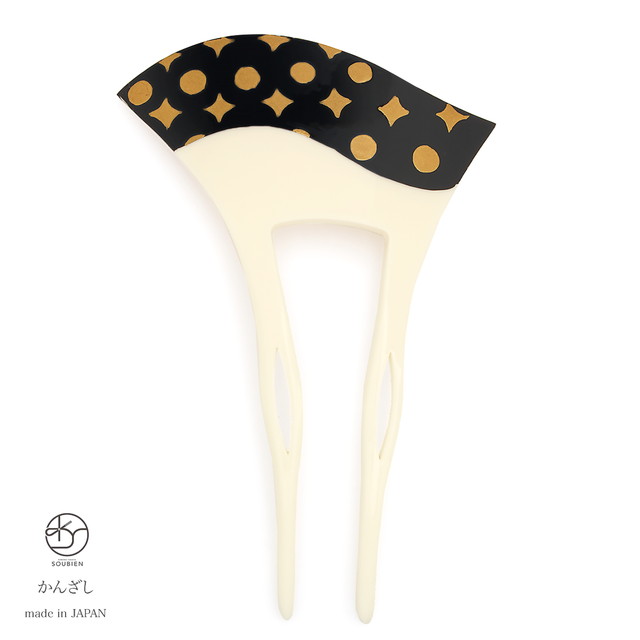 かんざし バチ型 和装 簪 髪飾り 白乳色 オフホワイト 金色 ゴールド 波 水玉 菱 星 手描き フォーマル 髪飾り かんざし ヘアアクセサリー 日本製