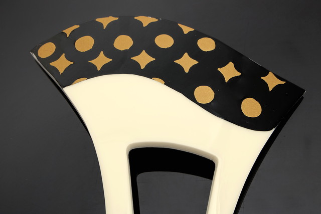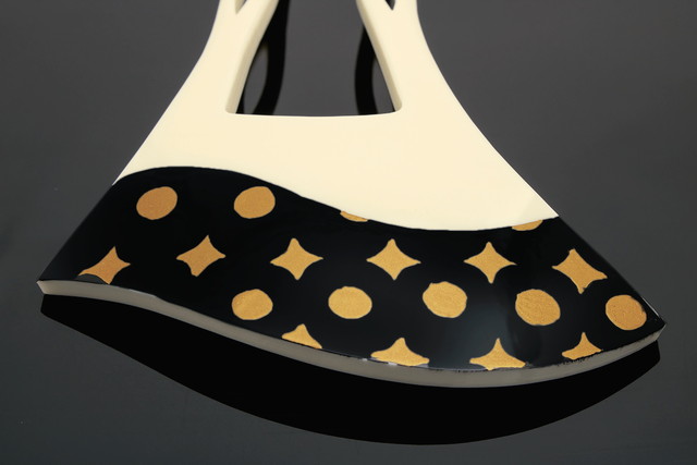 バチの流れにそって波のように塗りが施され、星のような菱と水玉が等間隔に描かれたデザインです。