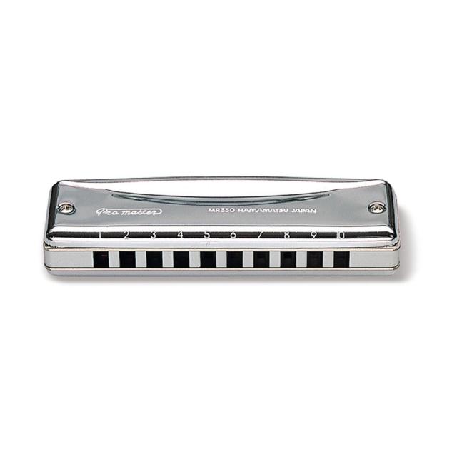 SUZUKI Pro master MR-350 A♭ 10穴ハーモニカコストと音色のバランスのとれたロングセラーモデル。クリアーなトーンでメロディックに演奏したい方に。音域:10穴 20音調子:A♭調材質:真鍮+クロム鍍金カバー アルミボディ寸法:100×27×20mm重量:90g付属品:ABSケース