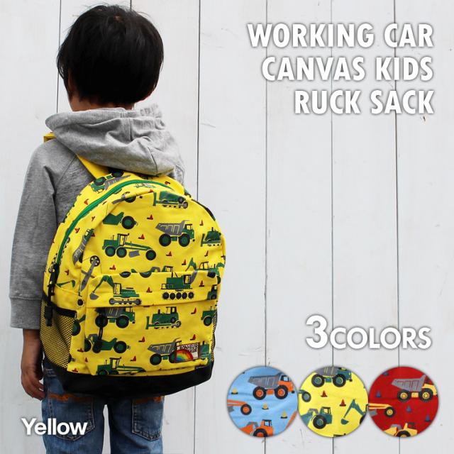 キッズ リュックサック 働く車 キャンバス リュック デイパック ダンプカー ショベルカー トラック 子供用 誕生日 プレゼント 074k