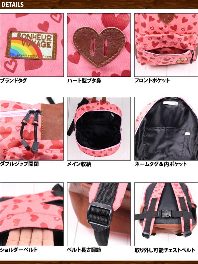 キッズ ハート柄 リュック デイパック レッスン バッグ 子供 通園 ハーネス 男の子 女の子 幼稚園 保育園 新生活 誕生日 プレゼント 105k