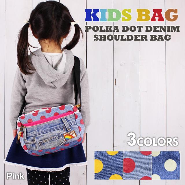 キッズ ショルダーバッグ 水玉 ドット デニム 子供 通園バッグ 軽量 かばん 男の子 女の子 クリスマス 誕生日 プレゼント 786k
