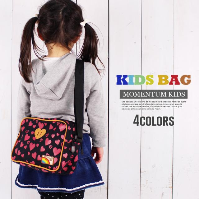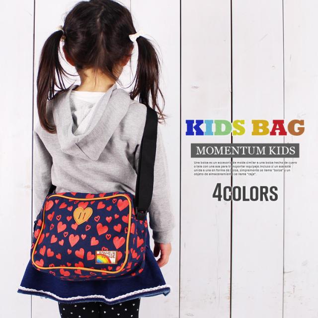 ハート柄 キャンバス キッズ ショルダーバッグ 子供 通園バッグ レッスン バッグ 軽量 女の子 誕生日 プレゼント 005k