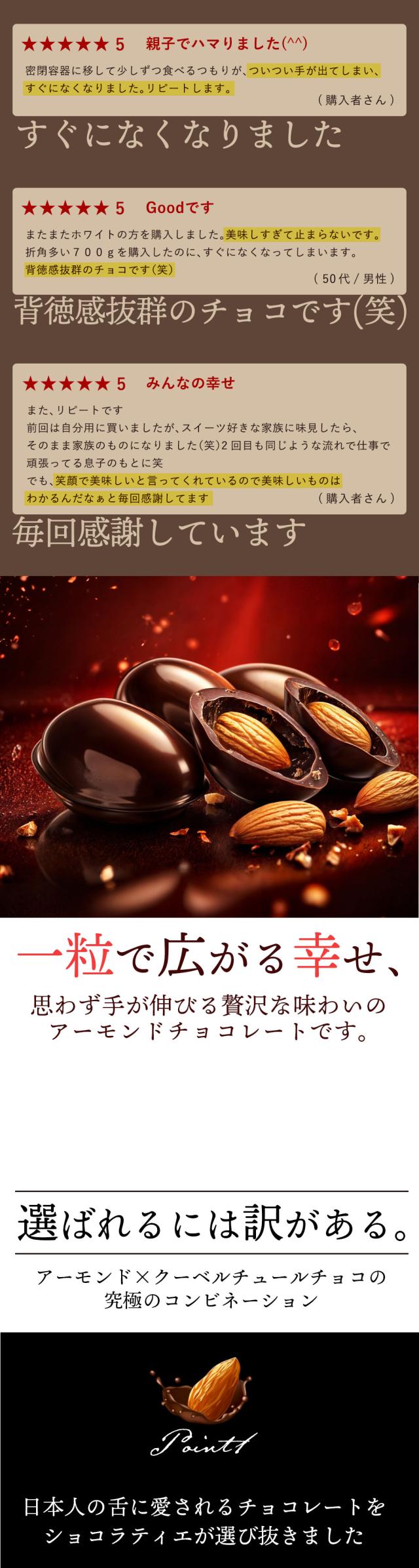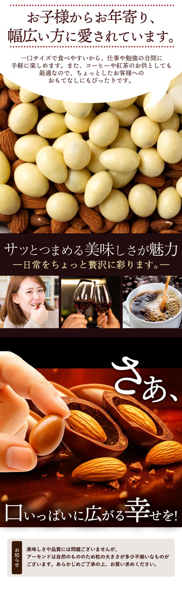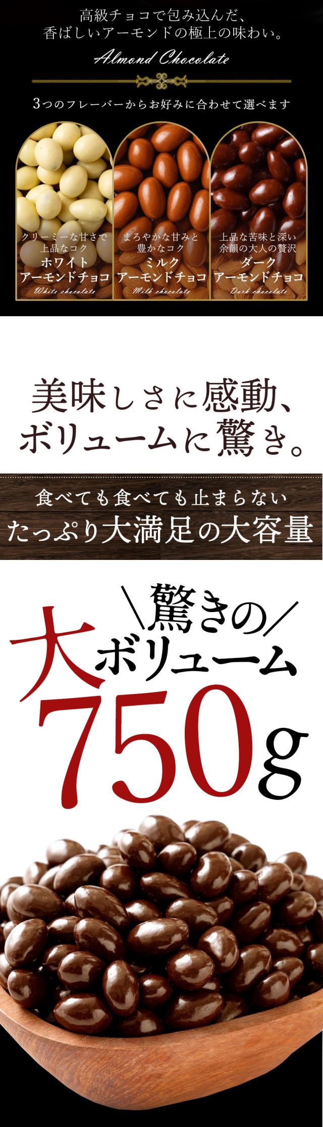 チョコレート スイーツ「高級クーベルチュール使用 3種から選べるアーモンドチョコ 大容量 750g (ミルクアーモンドチョコ / ダークアーモンドチョコ /ホワイトアーモンドチョコ)」 送料無料 [ 無選別 チョコ ]