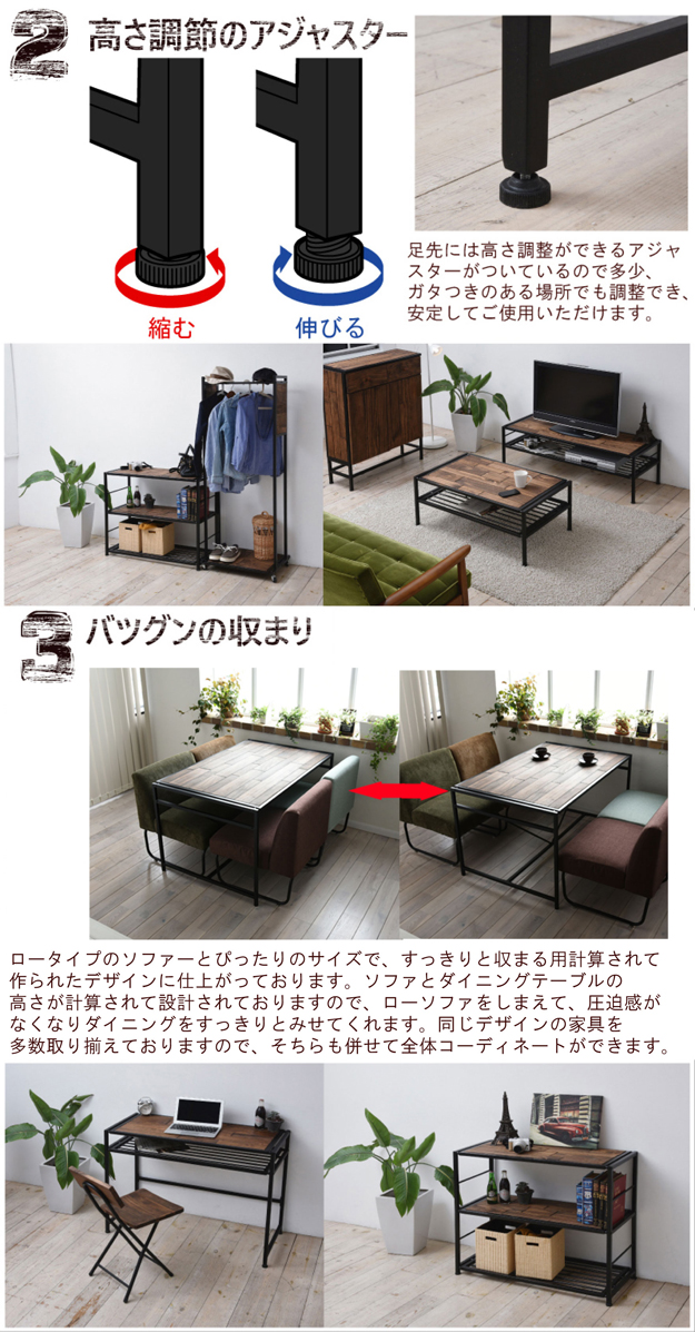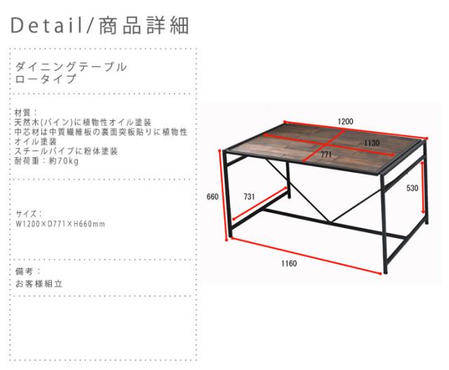 OMEGA オメガ ダイニングテーブル ロータイプ (アメリカン 西海岸 机 ヴィンテージ アイアン 天然木 木製 パイン材 )
