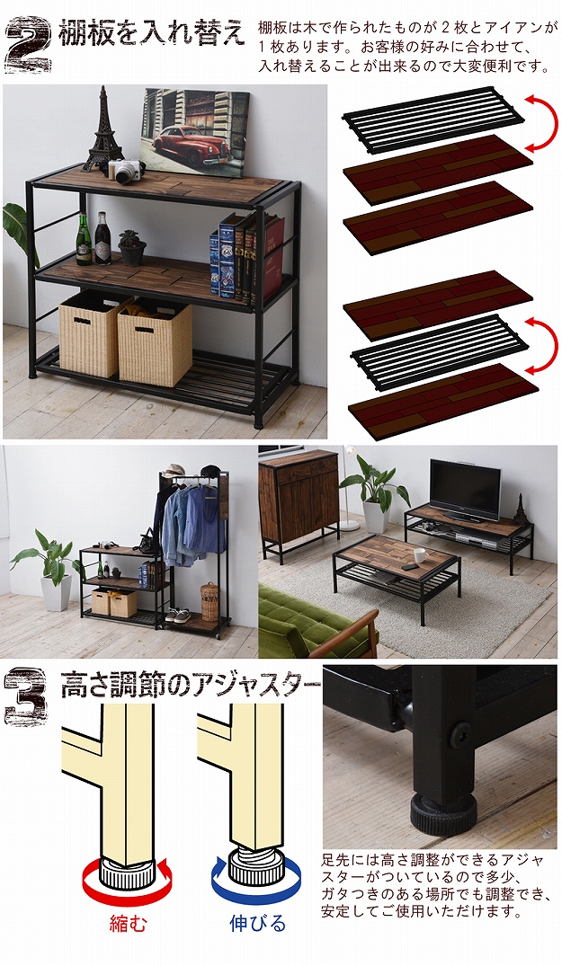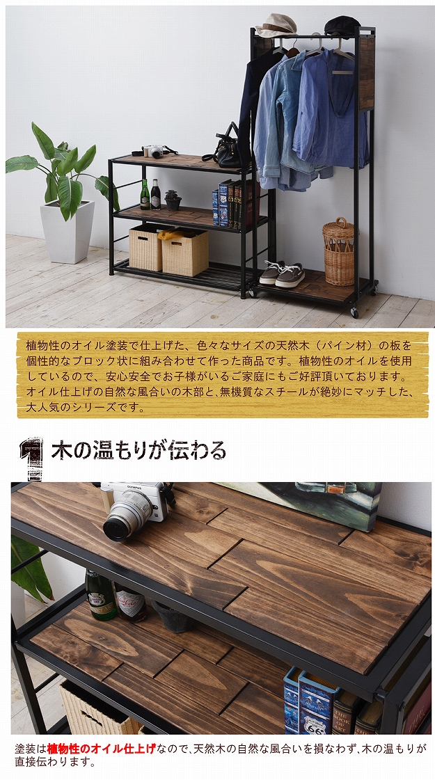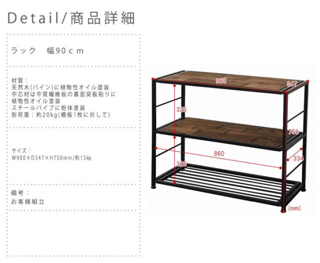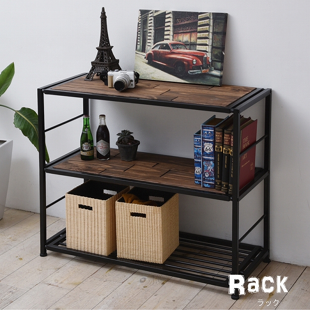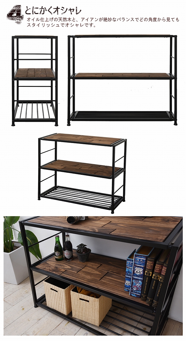 OMEGA オメガ ラック 幅90cm (アメリカン 西海岸 オープンラック リビング収納 ヴィンテージ アイアン 天然木 木製 パイン材)
