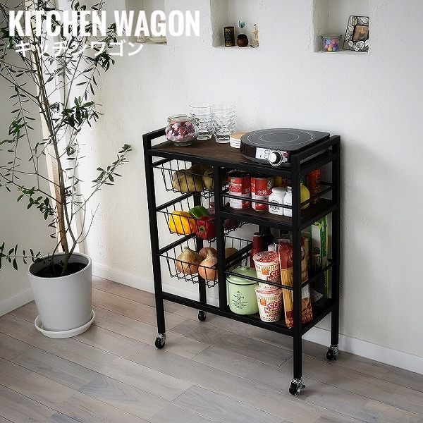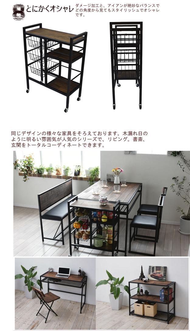 OMEGA オメガ キッチンワゴン (アメリカン 西海岸 キッチン収納 ワゴン ヴィンテージ アイアン 天然木 木製 パイン材)