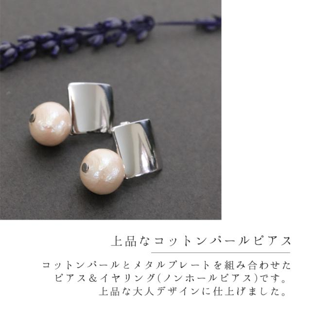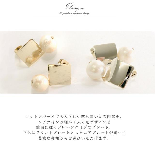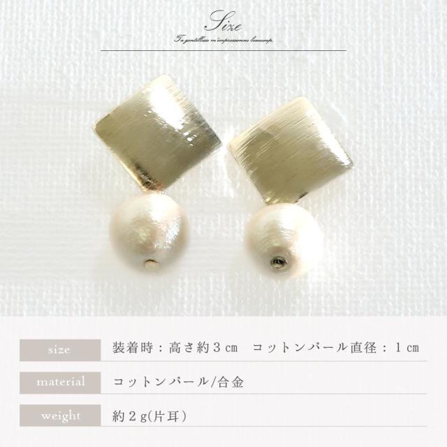 コットンパールとメタルプレートを組み合わせたピアスです。